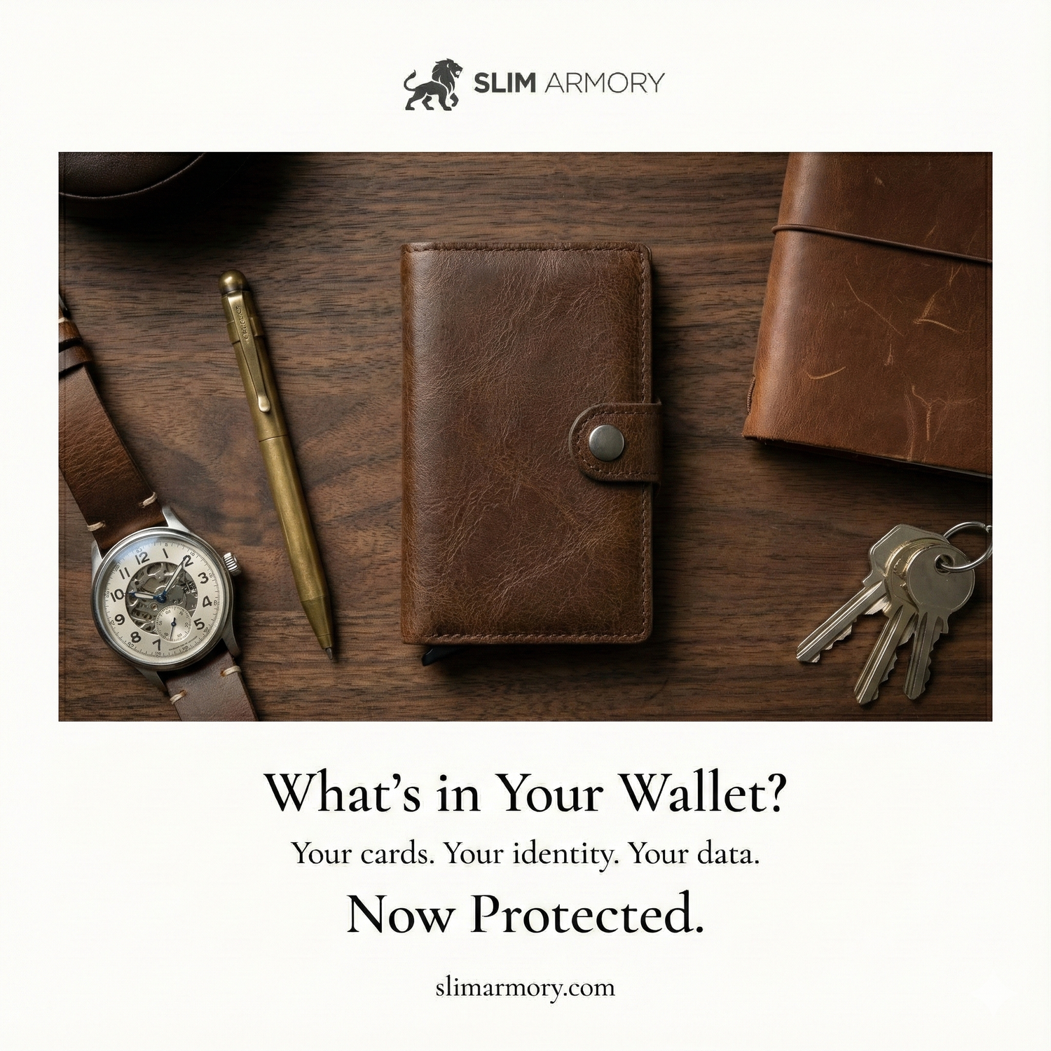 The Slim Armory Wallet — a premium RFID-blocking wallet that protects your identity and your money.